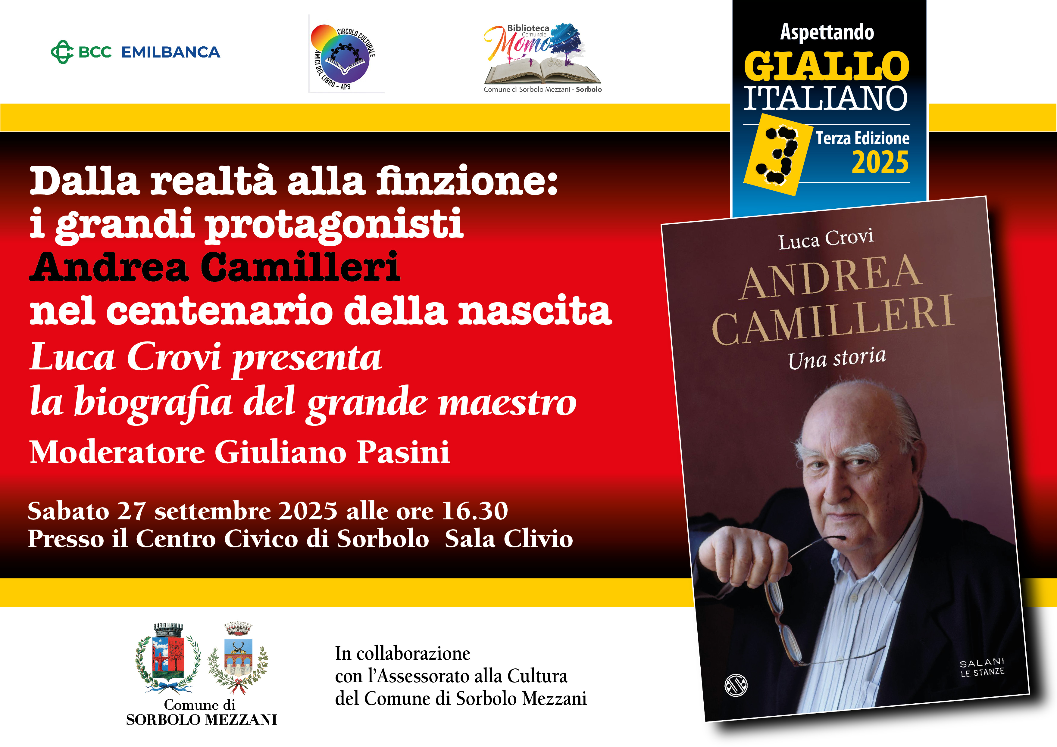 Nel centenario della nascita di Andrea Camilleri gli organizzatori di Giallo Italiano - Terza edizione intendono dedicare un incontro al grande maestro della finzione con la presentazione della prima biografia ufficiale scritta da Luca Crovi per Salani Editore, corredata da foto e materiali provenienti dal Fondo omonimo.