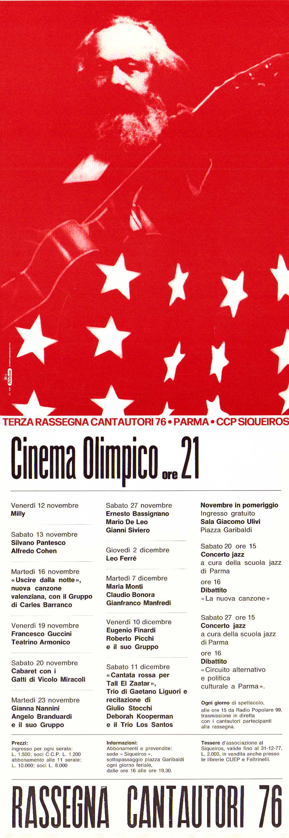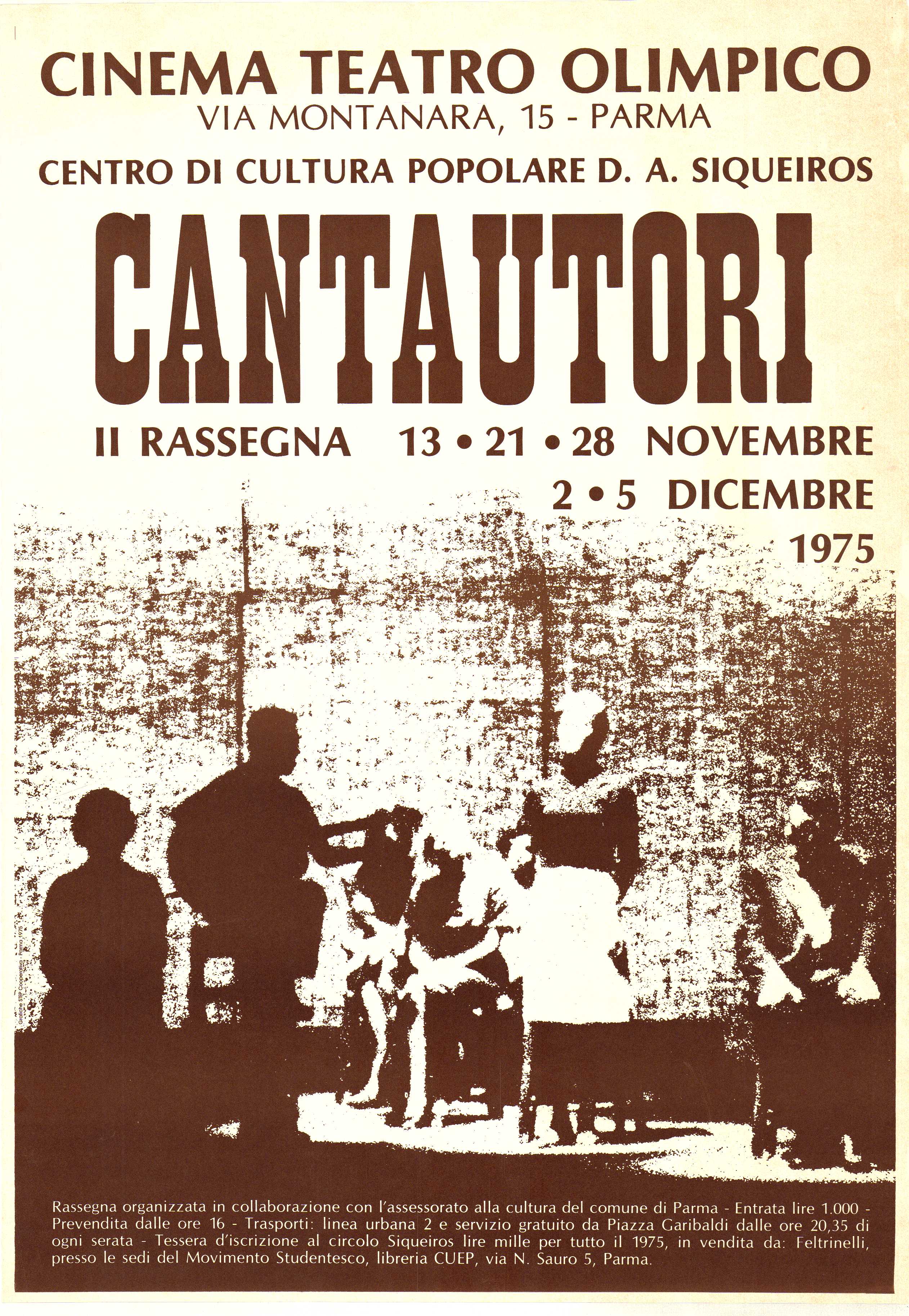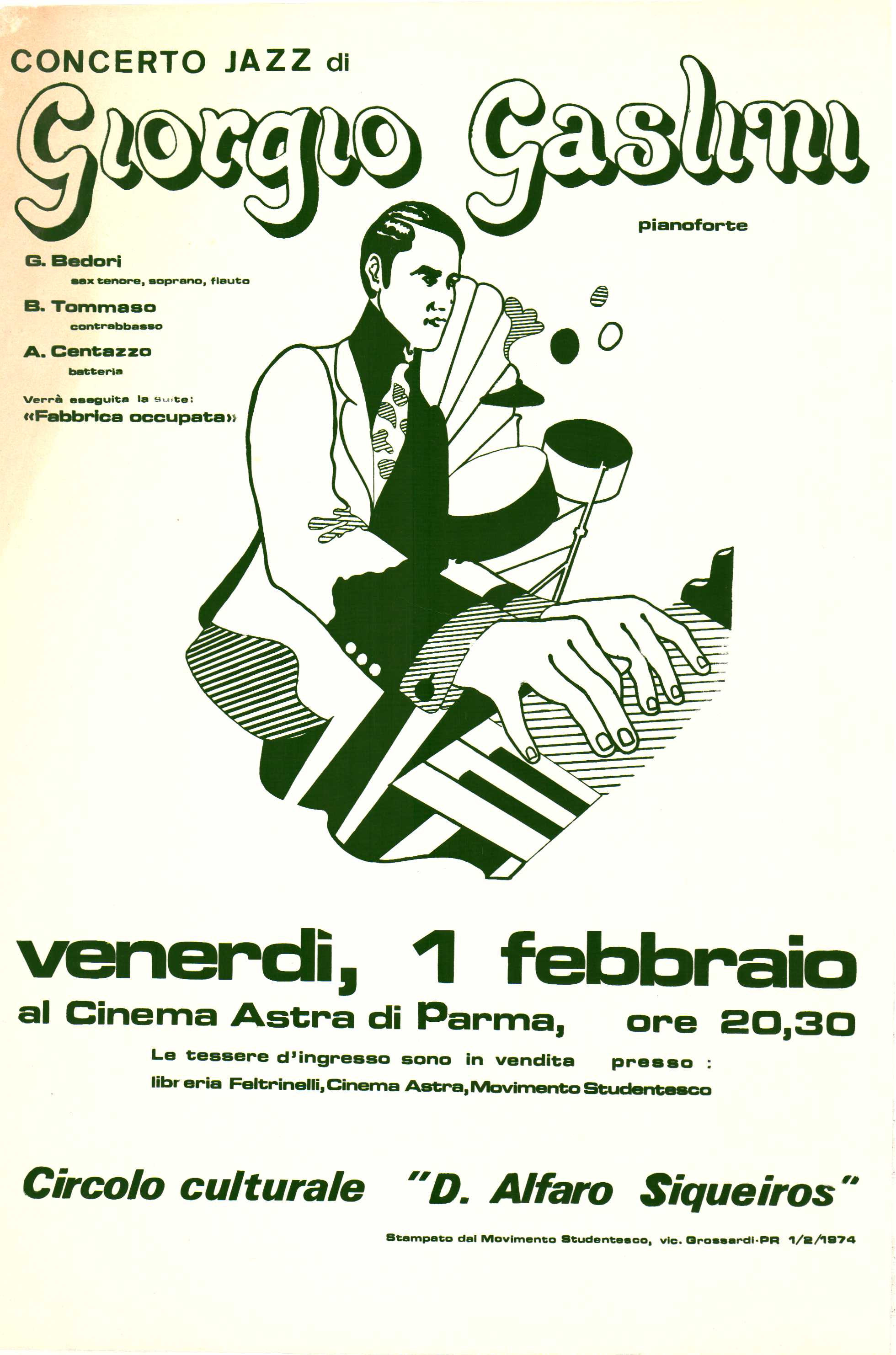 Tutto il catalogo giuffredi Rimuovi dalla ricerca corrente siqueiros Rimuovi dalla ricerca corrente Biblioteche CENTRO STUDI MOVIMENTI - BIBLIOTECA GERMINAL Rimuovi dalla ricerca corrente Risultati 1 - 5 di 5 ordinati per Rilevanza Titolo Autore Data - più recente Data - meno recente Cantautori : 2. Rassegna Manifesto-Locandina STEP <casa editrice> 1975 Lo trovi in CENTRO STUDI MOVIMENTI - BIBLIOTECA GERMINAL Consulta online Antonello Venditti, gruppo d'avanguardia musicale "Auf den sieben tagen" di K. Stockhausen Manifesto-Locandina 1977 Lo trovi in CENTRO STUDI MOVIMENTI - BIBLIOTECA GERMINAL Concerto Jazz di Giorgio Gaslini Manifesto-Locandina Movimento studentesco 1974 Lo trovi in CENTRO STUDI MOVIMENTI - BIBLIOTECA GERMINAL Consulta online Rassegna cantautori '76 Manifesto-Locandina Stampa grafolito <Treviso> 1976 Lo trovi in CENTRO STUDI MOVIMENTI - BIBLIOTECA GERMINAL Consulta online Radio popolare 99 Manifesto-Locandina 1978 Lo trovi in CENTRO STUDI MOVIMENTI - BIBLIOTECA GERMINAL Consulta online